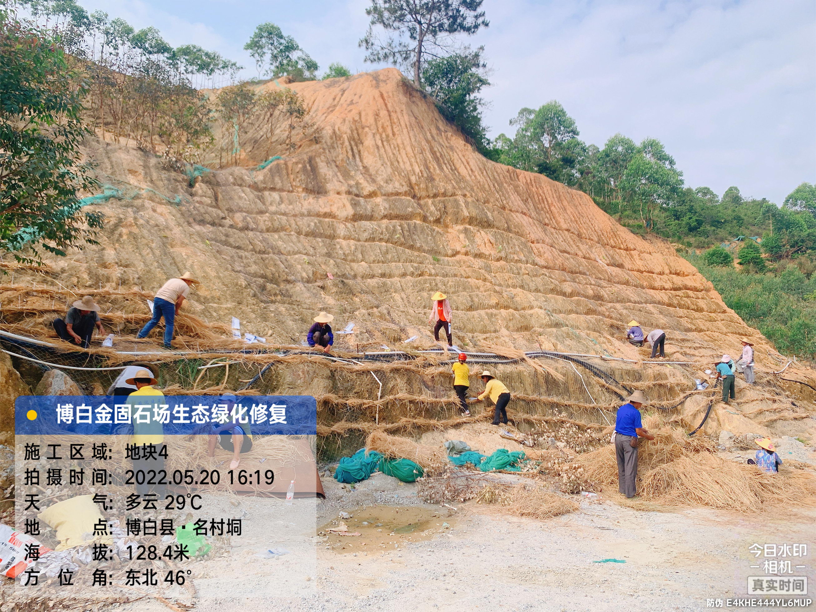 截止2022年7月18日,本項(xiàng)目共完成種植喬木苗木13000株,其中木荷5500株,鐵冬青5500株;大葉櫟2000株;人工撒播15000平方米。完成立面掛網(wǎng)木纖維噴播14000平方米,已完成治理面積合計(jì)約28000平方米。
